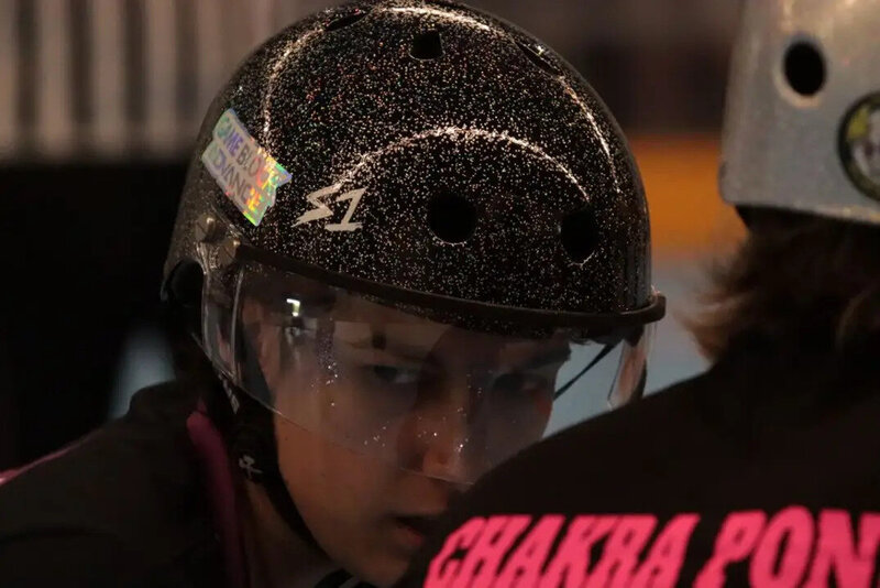 🛼 Je fais partie d'une équipe de roller derby, où je me défoule tout en faisant le plein de camaraderie et de paillettes ✨🌈 (d'où la photo avec le casque !)